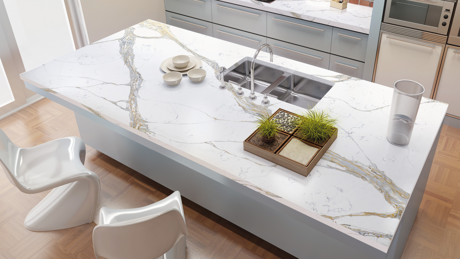 Tack vare detta passar kvartskompositen organiskt in i både klassiska och moderna interiörer, och blir alltid den detalj som framhäver husägarens oklanderliga smak.