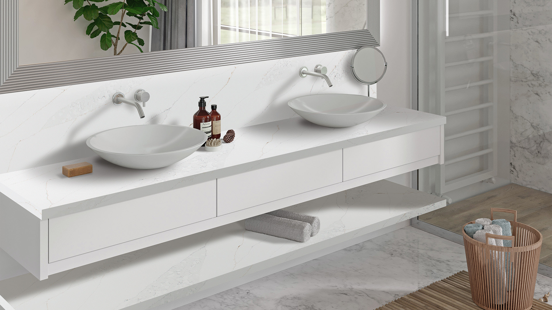 Genom att kombinera det bästa från naturen med mänskligt hantverk består detta miljövänliga material av naturligt kvartsgranulat (95 %), polymerhartser (4 %) och pigment (1 %).