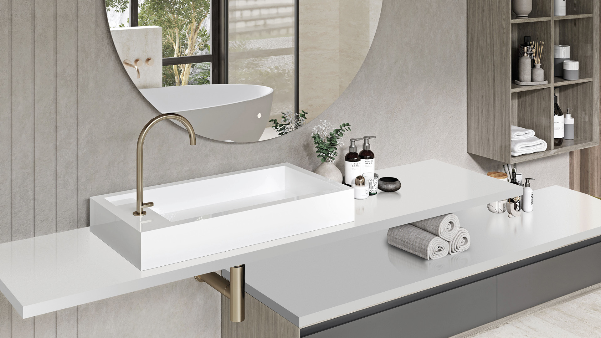 Genom att kombinera det bästa från naturen med mänskligt hantverk består detta miljövänliga material av naturligt kvartsgranulat (95 %), polymerhartser (4 %) och pigment (1 %).